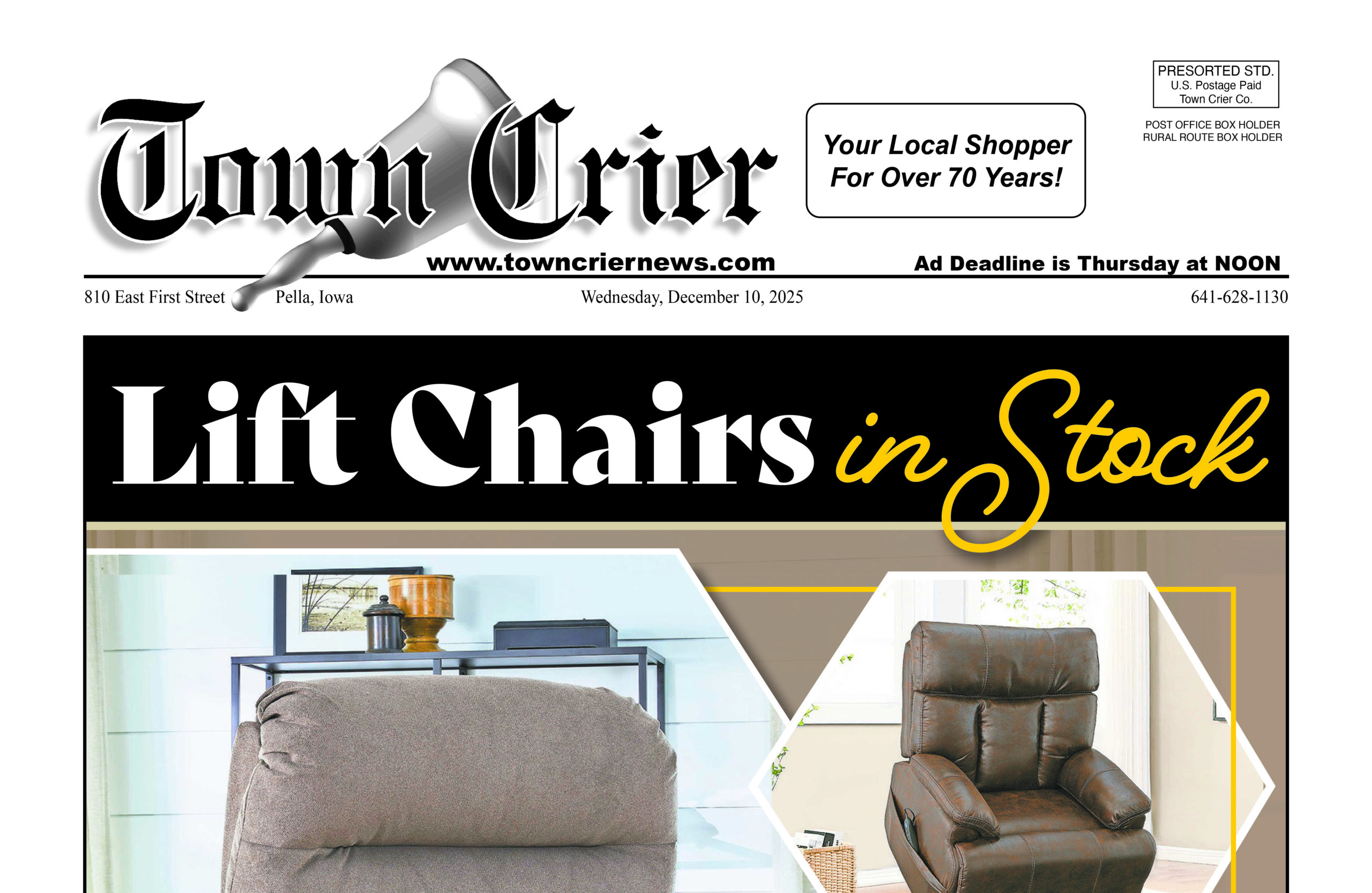 • FOR SALE: Washer/dryer set. $700 Call Karen 641-628-4751 • NOW HIRING! Part-time hours – No weekends! Send resume to mark@ towncrierltd.com • FOR SALE: Black Dirt and garden compost. Delivery available. 641-780-7171 • QUILTING SERVICES near Pella. Free motion,...